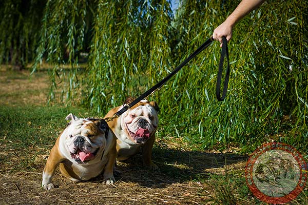 English Bulldog nylon leash with rustless brass plated hardware for professional use