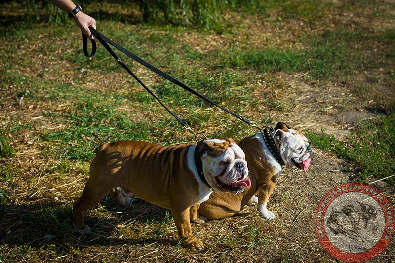 Multimode nylon dog leash with reliable fittings for English Bulldog